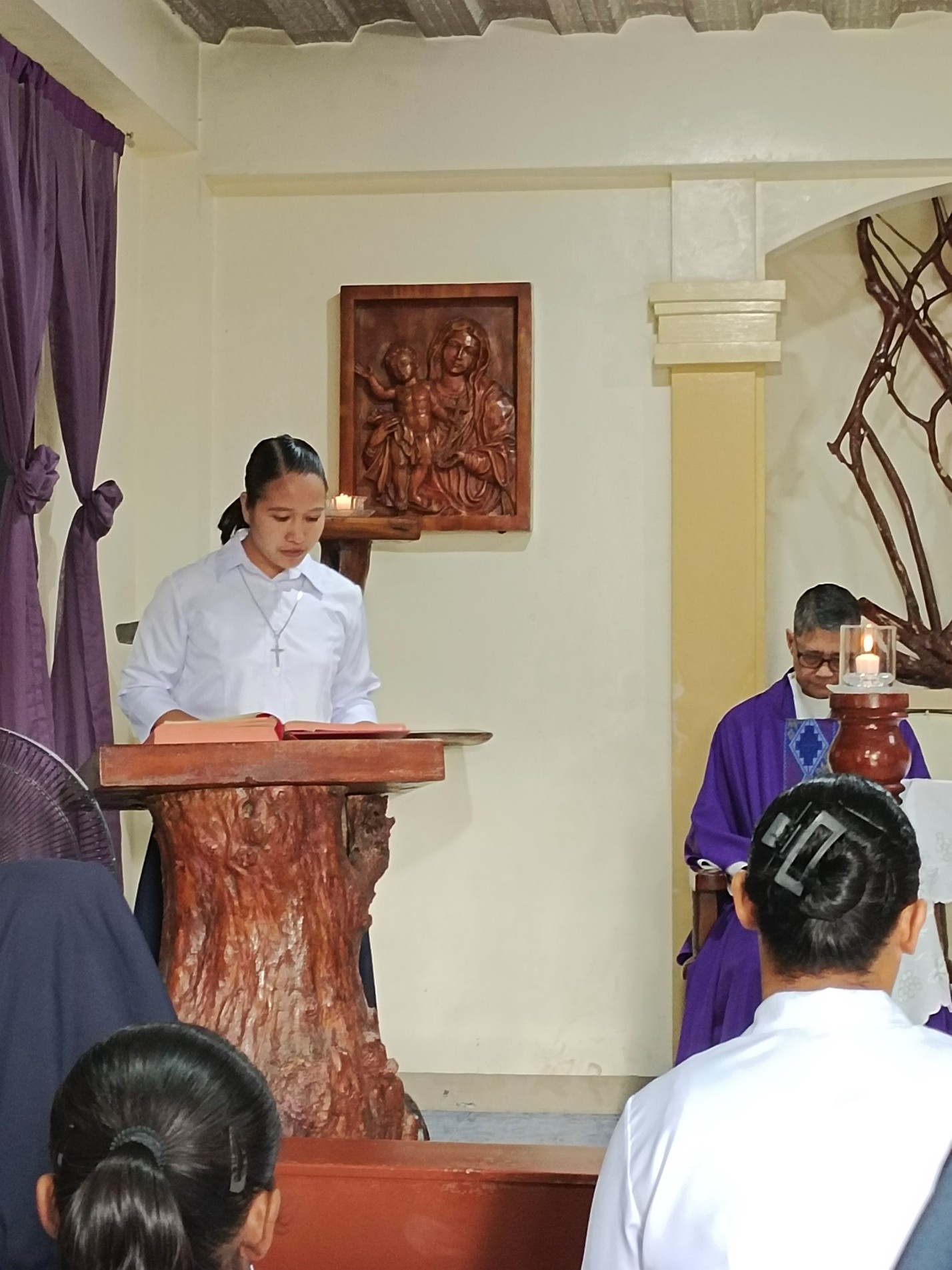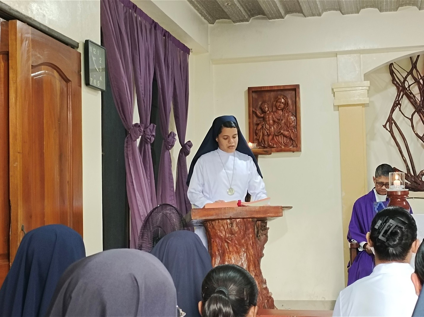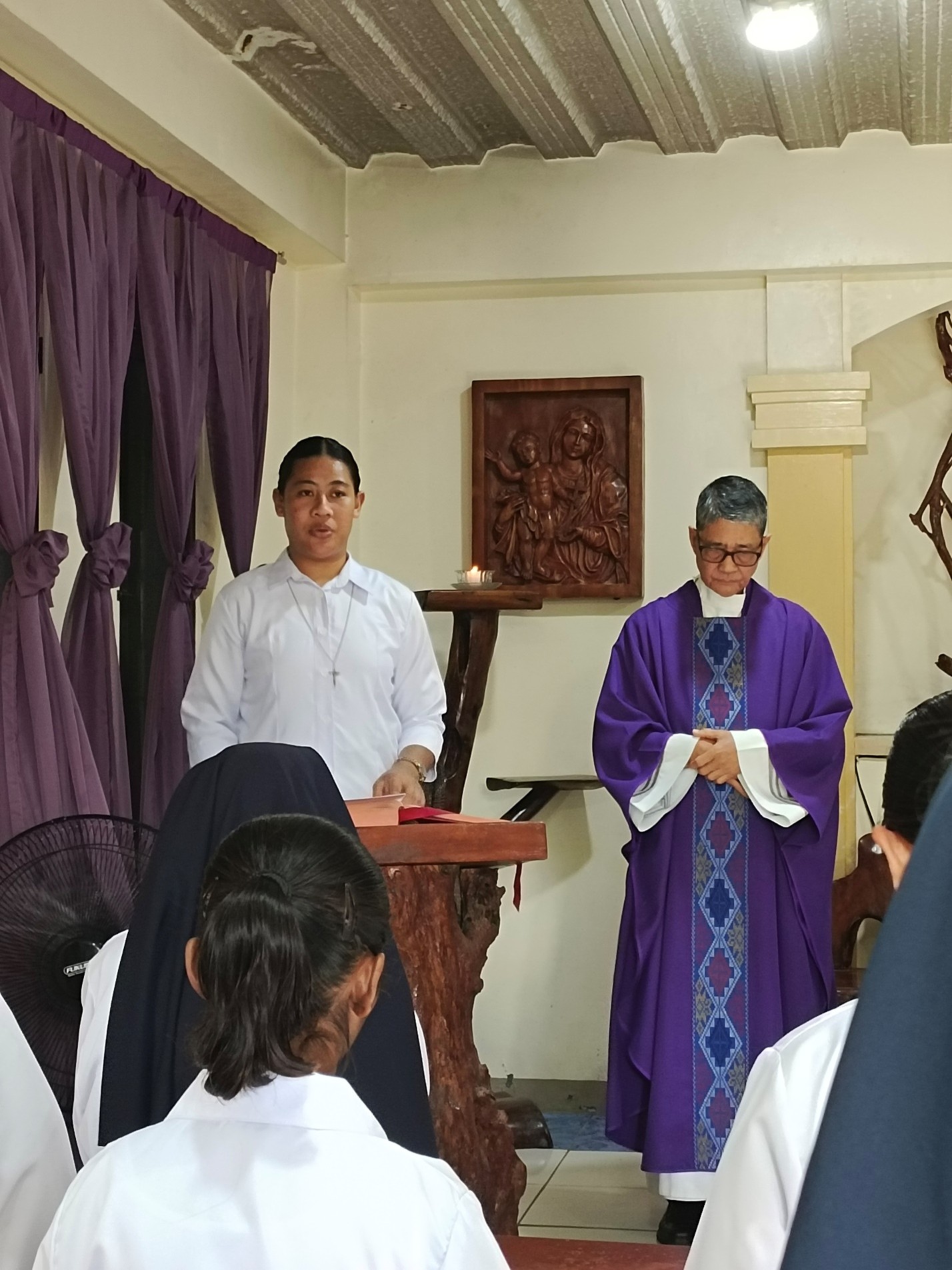 La celebrazione eucaristica è stata presieduta da Padre Benje, sacerdote Missionario della Fede, ed è stata vissuta in un clima di profondo raccoglimento e gratitudine. La liturgia è stata animata con gioia e partecipazione dalle neo-professe e dalle novizie, che hanno contribuito con il canto, la proclamazione della Parola e le preghiere dei fedeli.