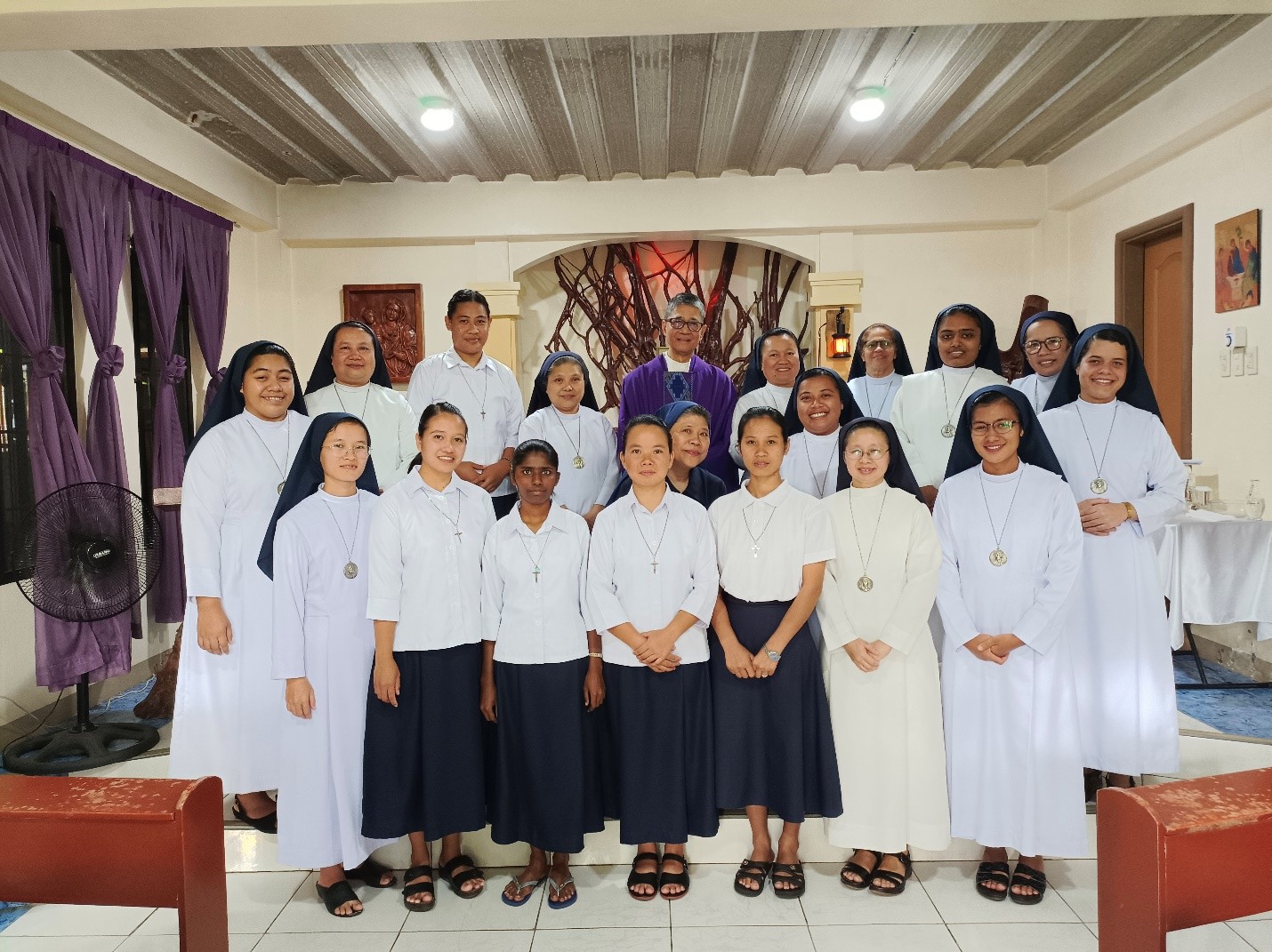 Con cuore riconoscente esprimiamo la nostra gratitudine alla Madre Generale, Madre Cristina, per la sua presenza paterna, per la sua guida e per l’attenzione premurosa verso la missione nelle Filippine. Accogliamo inoltre con gioia Suor Consolata Perez nella nostra comunità e la ringraziamo per il suo continuo e generoso “sì” alla volontà di Dio, vissuto con spirito missionario e dedizione al servizio del Vangelo.