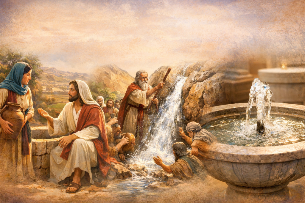 Questo dono dello Spirito, è simboleggiato dall’acqua, il tema battesimale è evidente, in questo caso non è un’acqua in cui ci si immerge ma è un’acqua da bere, è l’immagine dello Spirito. Noi siamo stati battezzati non solo nell’acqua ma nello Spirito Santo, siamo stati immersi nello Spirito dato da Gesù e quindi siamo diventati veri adoratori del Padre. Lasciamo lì la nostra vita di prima e possiamo ricominciare una vita nuova animata dallo Spirito.